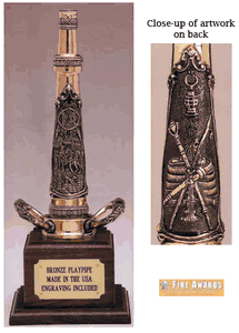 This sculptured bronze Firefighter Playpipe will be the hit of your fire awards presentation. Unique in it's nature and quality, an outstanding choice to honor the deserving firefighter. Great for retirements or "Firefighter of the Year".