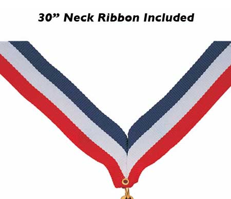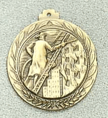 Working Fireman design 1.5" cast medal available in antique gold, silver, or bronze. Comes complete with a 30" x 7/8" Red, White, and Blue neck ribbon. Great for firehouse contests, races, competitions etc. Engraving on back available - 3 Lines - 15 characters per line.