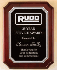 Our Notched Corner Engraved Rosewood Plaque is a Rosewood stained heavy-lacquer piano-finish notched corner plaque and is available in your choice of 3 popular sizes. The plaque features a textured black brass center plate with an attractive silver florentine design border. This beautiful plaque comes individually boxed, and can be engraved with your message for only $1 per line.